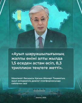 Мемлекет басшысы Қасым-Жомарт Тоқаев ауыл шаруашылығы секторындағы оң жетістікті жариялады.