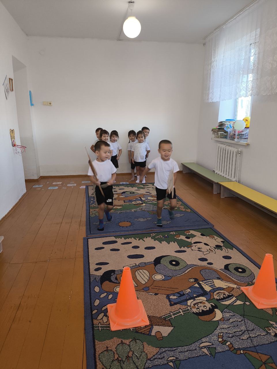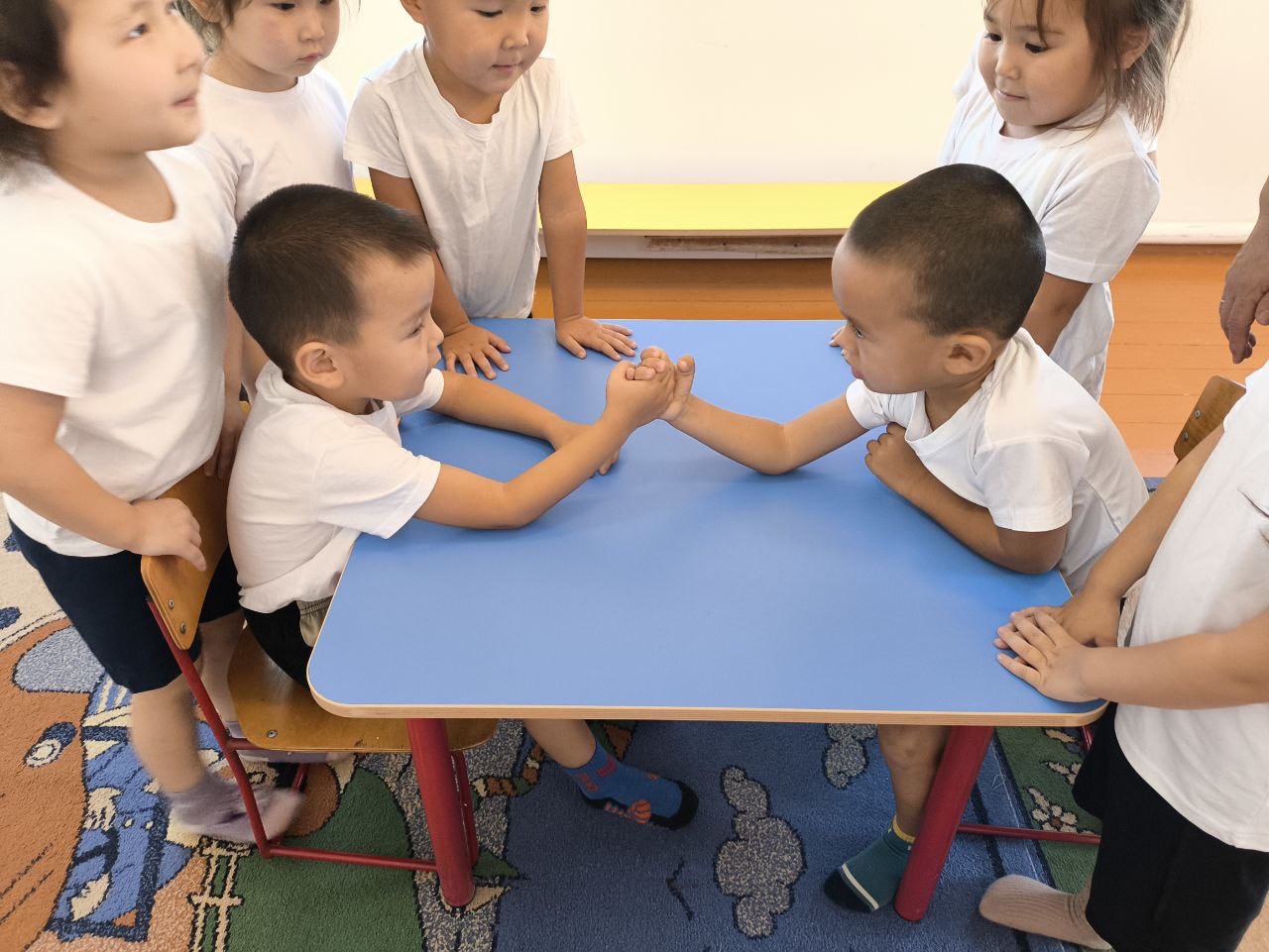 *Тақырыбы:* *«Елімнің ертеңі – ұлттық ойындар»* (Эстафеталық жарыс) *Мақсаты:* Балаларды ұлттық ойындар арқылы ептілікке, шапшаңдыққа, ұйымшылдыққа тәрбиелеу.