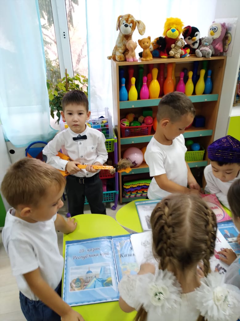 20 октября ко Дню празднования в нашем детском саду подготовлены и проведены тематические занятия по подгруппам. Воспитателями проведены беседы с воспитанниками: предшкольная и старшие группы «День Республики 25 октября», «Символы Республики», средняя группа «Мой край родной». Для повышения заинтересованности детей в изучении истории родного края, воспитания любви к Родине был проведен конкурс рисунков на тему «Казахстан - мой край родной», оформлены выставки в приемных групп и рекреации.