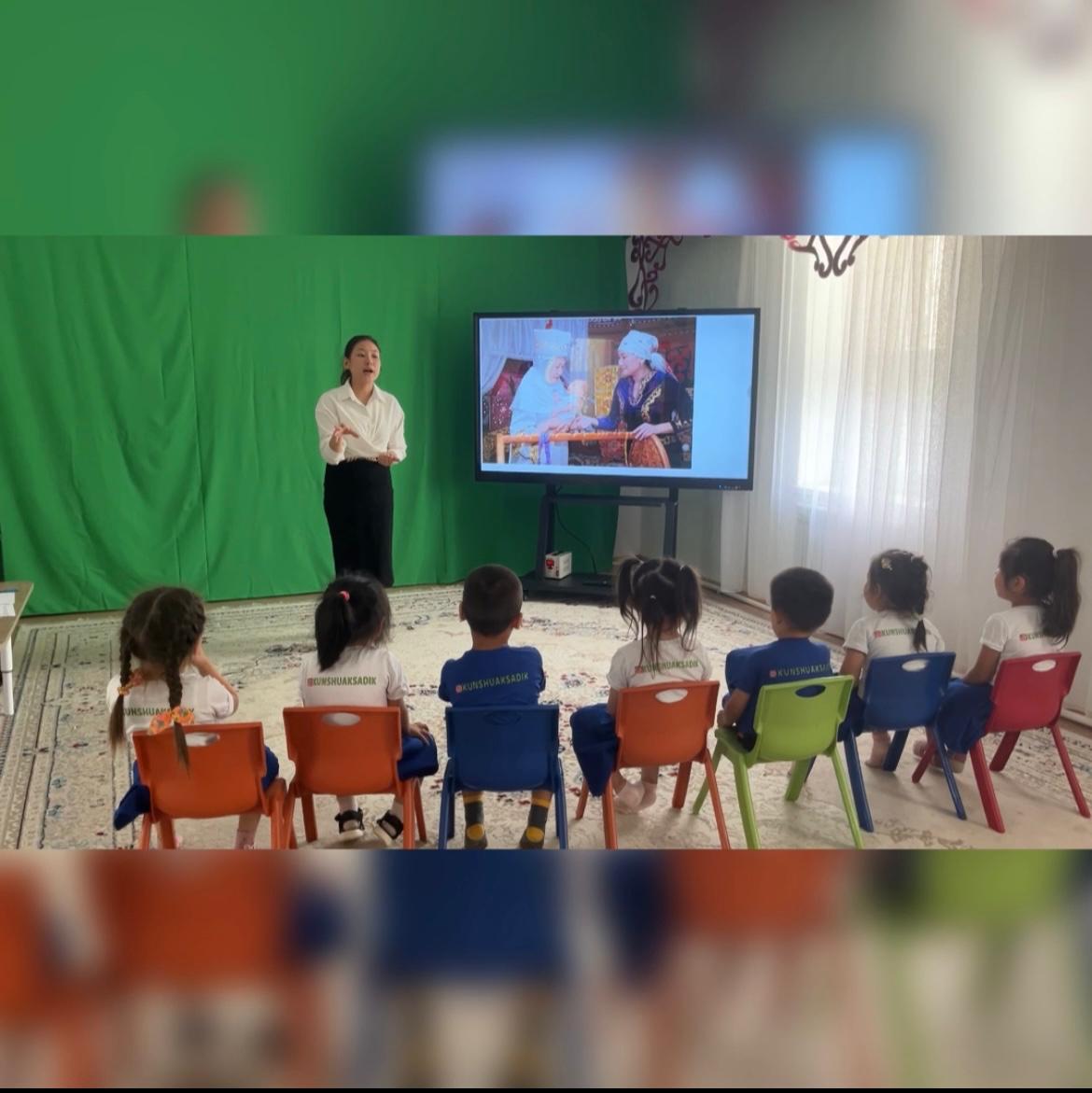 Мақсаты: Балаларды ана тіліміздің қасиетін, қадірін біліп, құрметтеуге, сүюге тәрбиелеу, танымдық қабілетін дамытып, Отанға, туған елге деген сүйіспеншілігін арттырып, патриоттық сезімге баулу. Барлық баланы бір-бірімен өз ана тілінде таза сөйлей білуге үйрету, өз ойларын анық әрі толық жеткізе білуге дағдыландыру. Тілдік сөйлеу әдептерін қалыптастыру, есте сақтау, сөйлеу қабілеттерін дамыту.