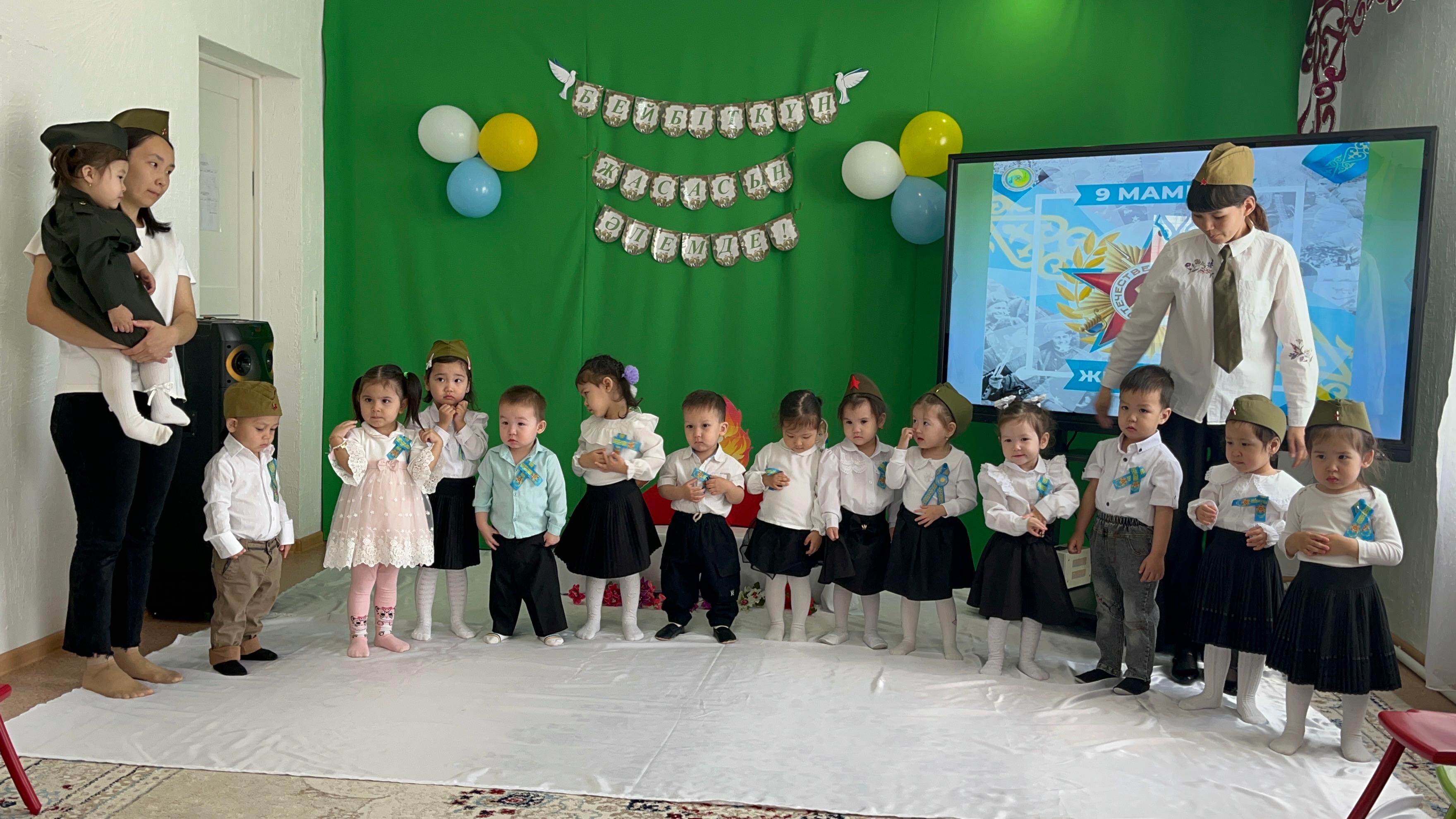 Мақсаты: Балаларды Отанға деген сүйіспеншілігін арттырып, патриоттық тәрбие беру. Жеңіс, ерлік, батырлық туралы түсінік беру.